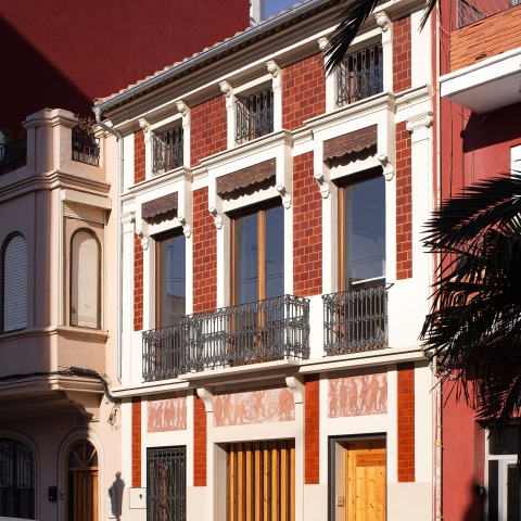 Located in Valencia ́s famous fishermans neightborhood of El Cabañal, The house of the Giants sets itself as a singular construction on this historical area. Its innovation, far from using in vogue solutions completely out of context and place, comes from the deep update of the history that takes place in this building. Without oversimplifying or stylizing, the task was to bring up with an updated contemporary proposition, all those materials and construction techniques of the Mediterranean, those of the local people and local industry, efficient and responsible, those that stood the test and weight of time with great dignity.