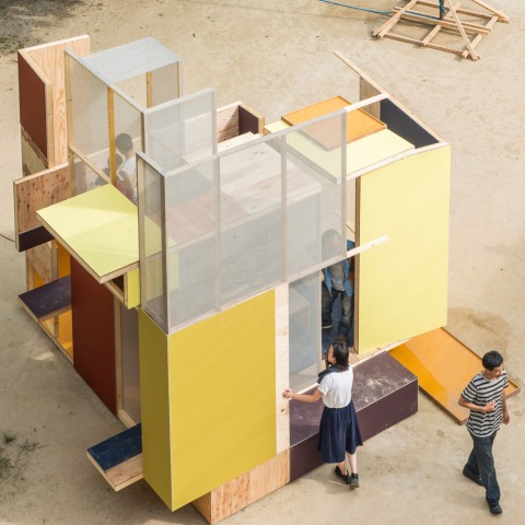 Is the folly for the invited exhibition “Kenchiku Symposion” at Kyoto Art Center. Taro Igarashi invited six teams from Japan, France and Germany to deal with the topic of prohibitions in Japanese Public Space and is built in the court yard of Kyoto Art Center – a former school building in the Kimono district of Kyoto.