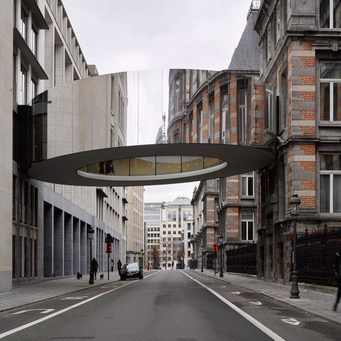 ‘Tondo’ is a footbridge that connects the House of Representatives’ offices with its recent extensions, the new Forum Building, on the other side of the Leuvensestraat in the centre of Brussels. The bridge was explicitly designed as a spatial element, rather than a technical solution.