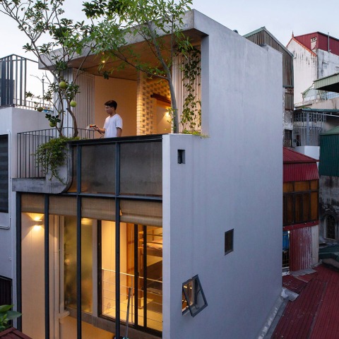 With such complex entry conditions, the architects were challenged to design a contemporary house reflecting the local cultural identity and the needs of the Hanoi family.