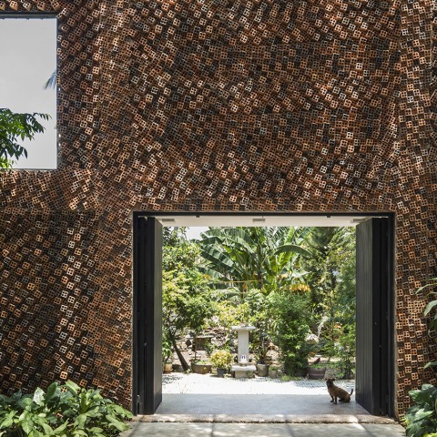 - Open wall system is the first layer to prevent bad effects from the outside environment. This protection shell is made of hollow bricks which are lined up in the opposite direction with the conventional method of construction. With such arrangement, these hollow bricks create circulation of fresh air and natural light into the house.