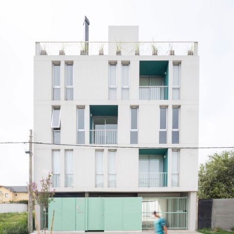 A block of flats is projected where color plays an important role because it modifies productivity, inspires decision-making and shapes our perspective. An emerald color is chosen inside the balconies to create contrast and establish a game between the lights and shadows of the residence.