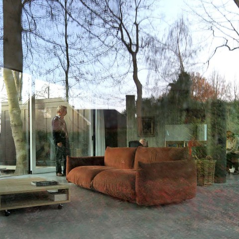 Structurally, the house is made up of two concrete slabs, kept at a distance from each other by concrete plates that also dictate the internal division. Where a larger span is needed, a supporting chimney breast is used. A foundation on wells ensures that roots can go their own way freely underneath the house. Because the lengths to be spanned by the roof slab are greater on the outside than on the inside, a difference in slab thickness is possible, with natural drainage towards the inside as a consequence.