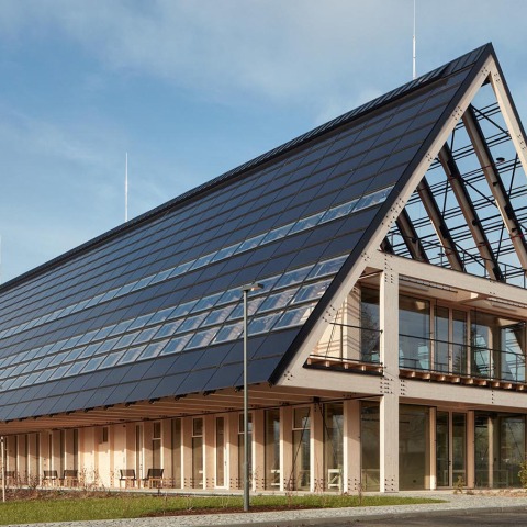 The building’s PV array produces enough energy to meet its requirements. The building has battery storage with a total capacity of 72 kW. The surplus is directed to cover the energy requirements of the company's production. In fact, the majority of all electronic equipment in the compound is using solar power at the moment. The headquarters’ solar panels also double as roofing material. Glass panels cover the northern part of the roof to let more light into the attic space.