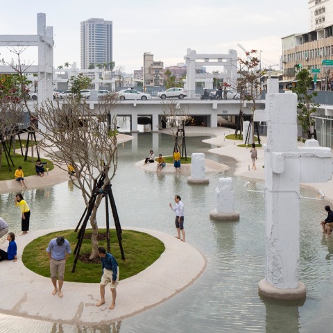 MVRDV celebrates the opening of Tainan Spring, a public space design that includes the transformation of a former city-centre shopping mall into an urban lagoon surrounded by young plants that will develop into a lush jungle, reconnecting the city with nature and its waterfront. Commissioned by the Urban Development Bureau of the Tainan City Government, the completed masterplan rejuvenates a ‘T-Axis’ to the East of the Tainan Canal, creating a new landscape strategy to unify the site of the former China Town Mall and a kilometre-long stretch of the city’s Haian Road. In addition to the new public square and urban pool, the plan includes improved public pathways, a reduction in traffic, and the addition of local plants.