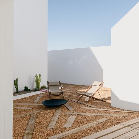 The design has been inspired by the local vernacular. ‘Açoteia Algarvia’, a flat rooftop feature for observing the sea and drying produce in the sun, has been reinterpreted and introduced on the new structures. A series of geometric volumes and carved-out voids provide private patios to the bedrooms, while windows, balconies and terraces strategically frame views to the surrounding arid landscape and the Atlantic Ocean.