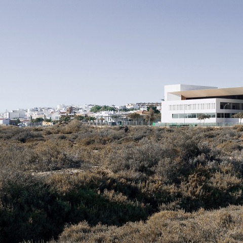 Ayamonte is a border city bounded by two large bodies of water. To the west is the mouth of the Guadiana, a great territorial reference for the town and natural border with Portugal, to the southeast the marshes and salt flats, an extensive, changing and horizontal landscape ignored until recently due to the railway belt dismantled in the nineties. The Congress Center is located on these lands rediscovered by the city.