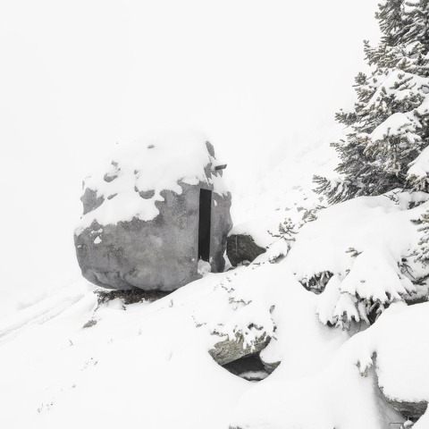 ANTOINE is a tribute to the alpine experience and to the writer. The small wooden cabin, big enough for the life of one man, is hidden inside a projected concrete rock. Referring to the long lasting Swiss tradition of hidden bunkers, the project integrates the highly urbanised landscape of the Alps. Already described by the French philosopher Paul Virilio in 1975, military architecture conducted by principles of camouflage has, for long, fascinated the architects.