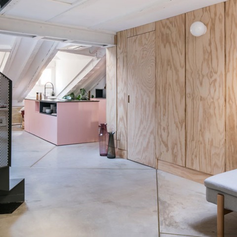 The materials used are more than tight, to focus the strength in the new kitchen, a cheerful pink that contrasts with the solutions, almost industrial, continuous floor and pine panels. The bathroom, narrow and very tight in horizontal, expands in its vertical dimension, creating a daily experience in which the shower receives natural light creating an airy space upwards. The distribution of the open and diaphanous ground floor, is articulated in its variable occupation ( arrival of guests, more or less private activities) by means of a simple curtain of great height and curved trajectory that divides the space when it is necessary, without generating edges.