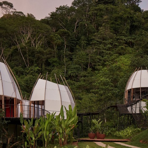 The pods are exposed to nature and the elements. Rain only falls six months of the year in late afternoon cascades, and when a storm hits, it’s a dramatic and unforgettable experience.