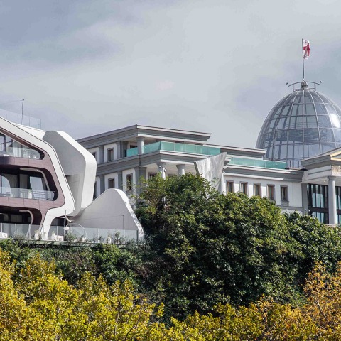 Every home needs to balance two things: privacy and retreat versus connectivity to its environment and various degrees of openness. PIPIA.PANORAMA does both to extremes by offering an intimate, secluded area around an inner courtyard, unfolding towards one of the most prominent locations in Tbilisi. Situated at the top of the stone cliff above the former caravanserai area, the new residence sits prominently next to the President’s Palace and overlooks the newly developed Rhike Park and the historic town center of Tbilisi across the river.