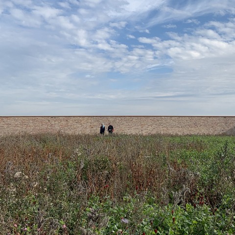 The project is presented in this plain territory, on an agricultural landscape, as a walled garden for people to meet, talk, play and exchange ideas, with a morphology similar to that of other constructions in the area, closing it on three sides with a simple wall of 2.4 meters high made with old recycled bricks.