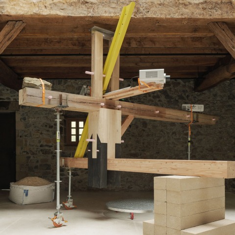 The amorphous and totemic object is inserted inside the Chillida Leku Museum, attempting to mimic its century-old wooden knots in a failed mission. Instead of camouflaging itself in the space, the intruder ends up creating new stimulus and tension in the old structure of the farmhouse. This prototype reclaims the non-predefined form of the farmhouse, and advocates for reuse and self-sufficiency, embodying both the productive and the domestic aspects.