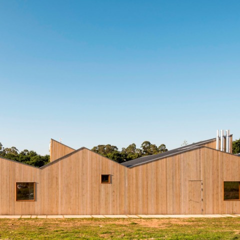 The school is located on the edge of the town centre, where it is already confused with the countryside. And with the collective memory, even still physical, of the old nearby industrial facilities present. A series of volumes, almost infantile, come together like little houses of some of the "rueiros" that follow one another a little further on. And in the land of carpenters, what, if not wood, could be our school made of?