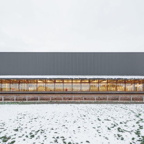 The project strives, through the choice of a wooden structure and its general volumetry, to offer an interior space characterized by the use of raw and resistant materials. The structure's design contributes to the interior space's “rustic” quality. The mastery of light in the large room is controlled, guaranteeing optimal comfort for the practice of sport. It is naturally lit and has an unobstructed view of the outside, both to provide views of the rugby pitch and the landscape beyond, but also to show its activities from the outside.