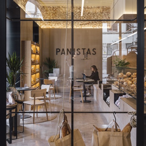 The program consists of a commercial area for the sale of bread and related products, and a workshop as a production space. The commercial area is organized around the counter, which in turn is transformed into a bench to serve some tables. Through wide openings in the façade, the interior of the bakery opens up to the outside.
