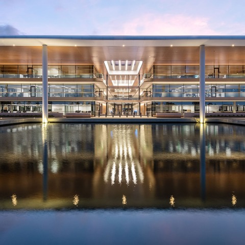 Nature plays a key role in the design, which incorporates principles of biophilia – an inherent affinity for nature found in humans – that is proven to enhance staff wellbeing and improve the quality of the workplace. The focus has been on creating a rich experience throughout the building, while enhancing the connections with the surrounding landscape and flooding the building with natural light and fresh air.