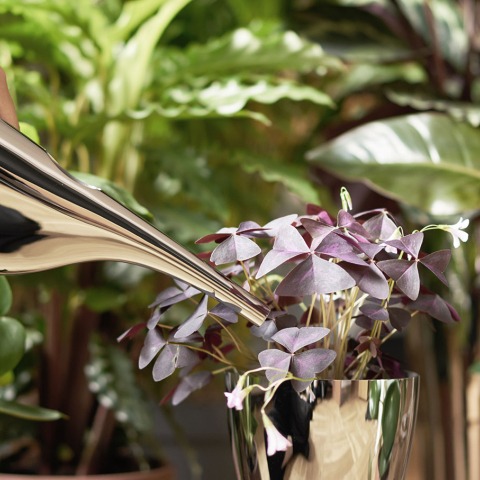 Three of the collection’s stainless steel planters are easily reversible, their subtly tapered silhouette providing two display options in one, depending on which end is placed into the discrete, accompanying saucer.