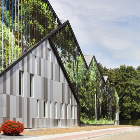 Finally, with image. The dynamic facade creates an optic effect. If you walk towards trees you see trees. It is an image of Wolfsputten. If you walk in the opposite direction, see the colours Hoppenbrouwers.
