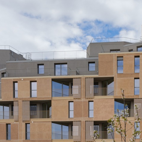 To soften the staggering, the building is divided into successive terraces that reduce the perceived scale while providing private use of the roof by the dwellings. This double scale of the volume allows it to interact with the surrounding buildings.