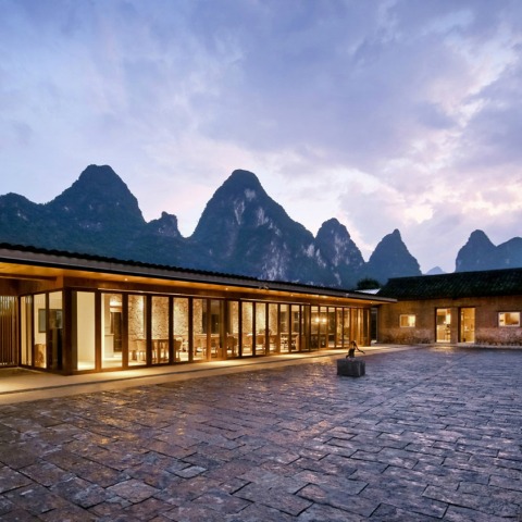 The Yun Lu (Cloud House) is a boutique eco-resort nestled within a village between Guilin and Yangshuo and situated along the dramatic landscape of the Li River. The site consists of five renovated historical farm houses and one new addition which functions as a restaurant and the main gathering space for hotel guests.