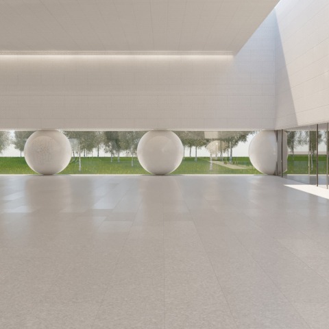 Above ground, spherical glass pedestals support the 70-meter-long station roof, giving it the appearance of floating. This language is continued to the underground, where rounded pylons feature a granite finish meant to resemble cracked porcelain pieces. Several design choices inside the station help to improve the user experience, including benches integrated into interior walls and mirrored surfaces intended to reduce the speed of passengers, who will involuntarily slow down lookong their reflection.