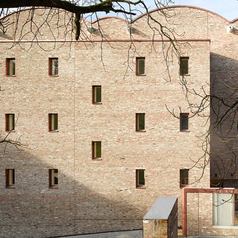 All material are recycle however the copper is not recycled but as Arno Lederer points out ‘lasts five or six centuries’. Commonly used in the town for drain pipes and guttering, here it is also similarly employed but as a distinctive. ‘We get into conversation with a building through the details,’ as Lederer puts it. For him it is as much a conversation with modern architectural history as context.