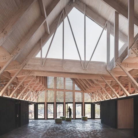 The Pivadenco School is part of the “Escuelas Rurales de la Araucanía” project, an initiative of the Ministry of Education that, through architectural competitions, proposed the development of 8 small public schools in rural areas of this region. La Araucania is the poorest region in Chile, with a high percentage of Mapuche population, and an unresolved historical conflict that deepens. Our offices developed four schools, two in the Los Sauces district and two in the Melipeuco district, territories with diverse communities that required schools with an intercultural approach. In this rural territory with a scattered population, the school is the center of community life. Then we defined a common strategy for the four schools, we understand these buildings not only as an educational center but also as the social center of a territory. To promote this idea, all the programs for common use and recreation set out in the competition requirements, the dining room, the circulations, the access hall, and the covered patio were brought together in a single space. Thus, a hierarchical space was created, capable of ordering the other enclosures, linking with the outside world, and adapting to host different educational and social activities. In addition, to achieve greater adaptability and fluidity, it was sought to dilute the boundaries between this central space and the classrooms through sliding doors that allow integration and flexibility of use.