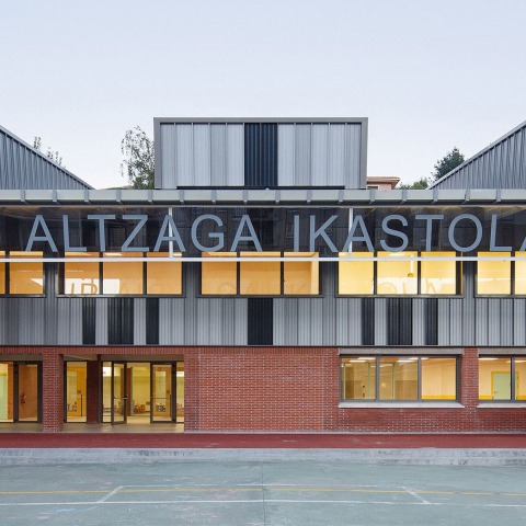 A broad intervention in three units of the classroom program, putting in line the program of common uses. The project replaces the volume of the gym, superimposed on the building, by the extension of the teaching program. The inner stair core is relocated and an elevator and evacuation exits are incorporated in the front walls to comply with current regulations.