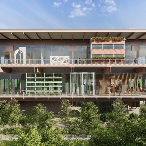 Our massing is organized in a single volume which emerges from a single-level basement which is pierced by two sunken courtyards to provide daylight and ventilation to the public programs. Centred between them, an atrium will connect to the ground floor lobby and the accessible storage volume sitting above. The Museum complex canopy is left independent on the Eastern edge of the public square. The monumental mass of the accessible archive will sit in the middle of a walled treasure garden, where architectural fragments will be displayed between abundant trees and vegetation, in a picturesque fashion.