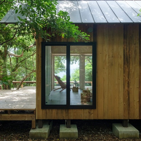 The buildings and decks are raised, dispersing wind flowing between the mountains and the sea without blocking it. This allows the forest to breathe, promoting healthy air and water circulation. Despite the humid climate, this ventilation prevents moisture accumulation that may damage the buildings. Naturally-derived persimmon tannin is applied to the wooden structures near the soil to prevent erosion by insects. The result is a space that breathes together with the surrounding forest.