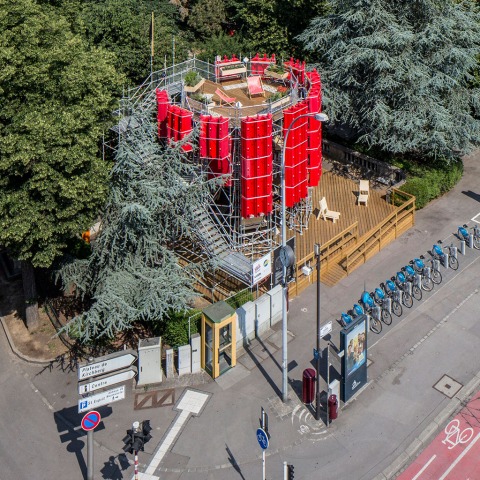 The project is developed in the context of the 2015 call for residencies promoted by the Casino Luxembourg Forum d’art Contemporain, for interventions in public space. This intervention is located in a square that is at the intersection of Boulevard de la Pétrusse and Passerelle / Viaduc. This space will be open for a period of three months, from June 20 to September 6, 2015, raising the recovery and activation of this square.