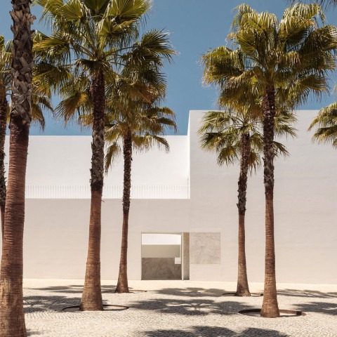 The Grândola’s new Library and Municipal Archive is accessed through the set of palm trees that structure the renovated Praça da República, now purged of all the noisy and conflicting elements, which have been removed from there in search for a more pacified order. This square is the central place of the city and the epicenter between the Municipal Garden, to the southwest, and the Orange tree garden, to the east. The new building forms part of the square and - due to its scale and program - constitutes itself as a reference element that counterpoints the urban continuum. In this sense, our concern has been to elucidate the building’s presence in the square, making it clear, solid and identifiable, and to include it in the network of streets by creating a continuity between the forecourt drawn by the square and the interior spaces of the building.