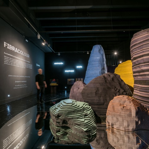 Finally, we find Trevinca, the highest meteorite in the Astral Bodies By Finsa exhibition, which takes its name from the highest mountain in Galicia. Composed of black Fibracolour, this piece will be one of the focus of this astral world that we have created together with ENORME Studio and Vitamin-art.