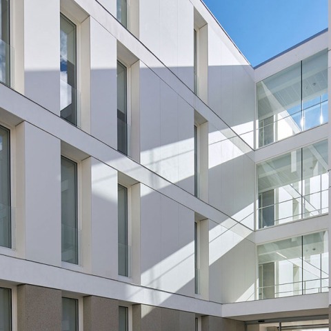The greatest interest of the original complex lies in the layout and articulation of the different volumes, generating a very interesting sequence of landscaped open spaces. The intervention does not alter these conditions and the new buildings rest on the footprints of the east and south buildings.