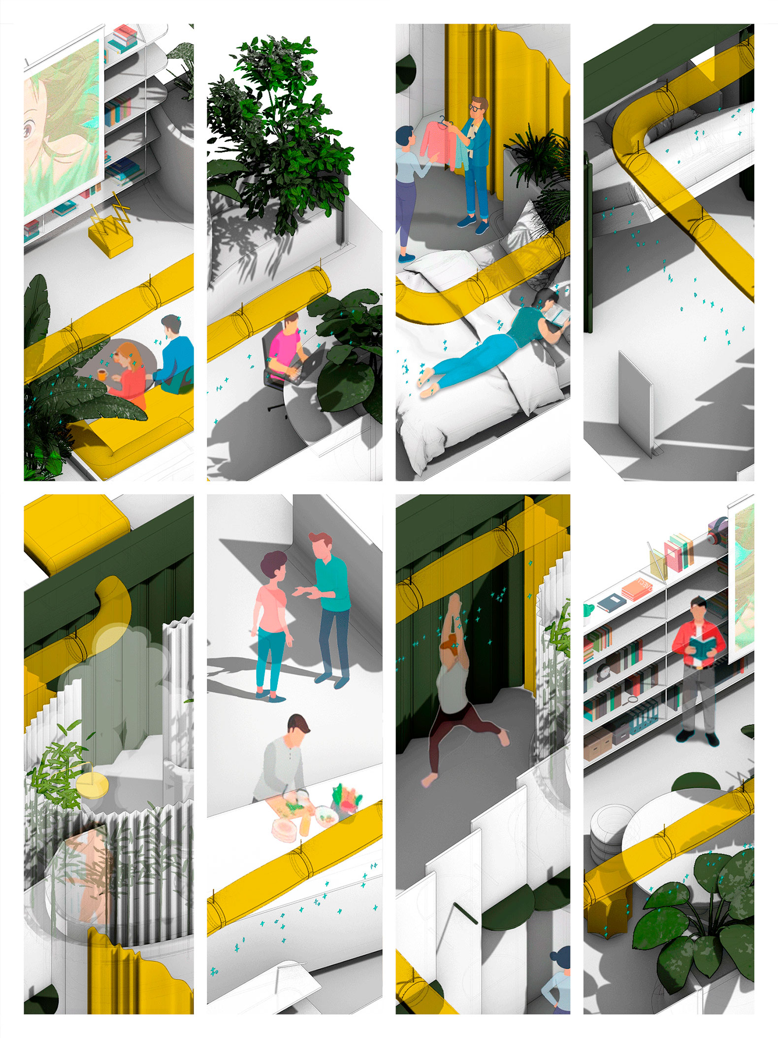 These partitions don't interrupt; they activate atmospheres. They function as sensitive filters that define spaces according to their needs, not according to their names.