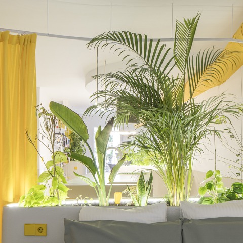 To delineate the spaces, metal mesh, translucent polycarbonate, textile curtains, and natural vegetation were used. An automated irrigation system, controlled by humidity sensors, maintains the plant ecosystem, and a textile duct system provides climate control for even temperature distribution.