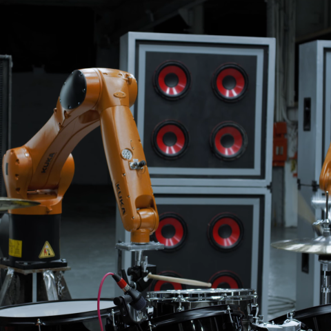 "Robots rock, they were fun to work with. My favorite is the robotic drummer. More work to be done, and maybe I could play with them live. Stay tuned :) Thank you to Kuka, Sennheiser and Roland"