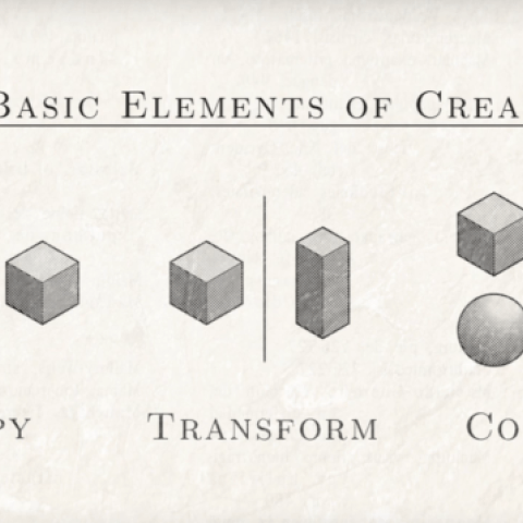 The image: The basic elements of creativity: copy, transform, combine. And a new video about this idea: "Everything is a Remix, Part 3: The Elements of Creativity". A brief history of intellectual property, or why 1790 was more culturally progressive than 2012. What do you think?