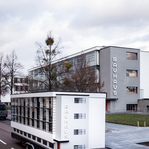 Nicknamed “Bauhaus-Wohnmaschine” (Bauhaus living machine), the 15-square-meter model on wheels features a replica of the original building's iconic of the curtain wall, conceived by Walter Gropius in 1925. Inside the program includes an exhibition space and reading room dedicated to the history of the famous school.