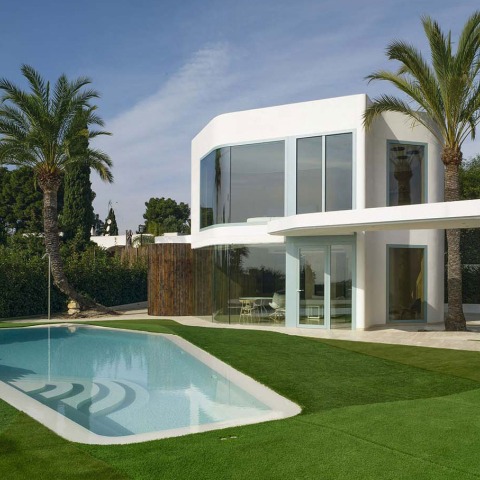 The whole complex is decorated with vegetation, existing both inside the house and outside, with the landscaped roof and the xeriscape of the plot itself.
