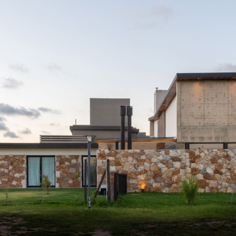 The image is always associated to each particular site. As the modern edge is the core concept of our firm, in this project we strived to provide a style of architecture that is warm and rough, that blends with the existent vegetation by the use of wood as claddings, solid materials such as bare stone and cement, and steel for a touch of lightness and simplicity to certain details.