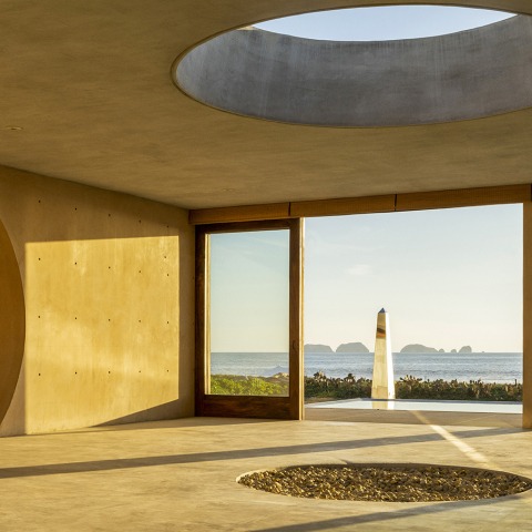 The concrete walls, combined with red tepetate stone, evoke the typical tones of the region, merging with the glorious sunsets. Thus, the interior and exterior spaces integrate organically, establishing a subtle harmony. The house features four bedrooms: three of which are sleeping quarters, including a master suite, and one is a study. Additionally, a lookout offers new perspectives, while a pool provides privileged views of the ocean.
