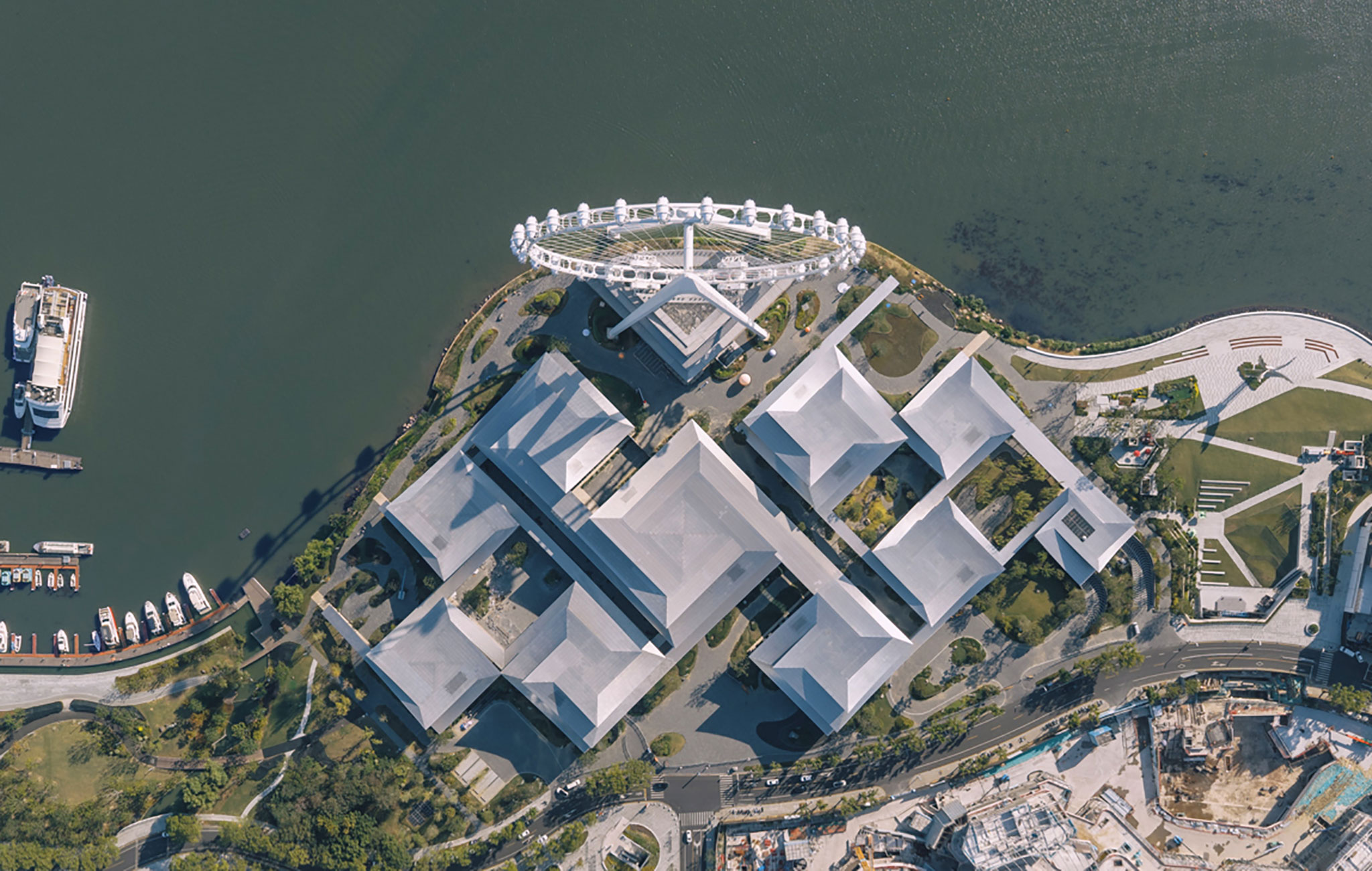 The museum's landscape design creates an inviting public space on the shores of Jinji Lake through a series of interconnected gardens. As visitors approach the water's edge, the gardens gradually transition from paved areas to vegetation and, finally, to aquatic-themed plantings, reflecting a natural progression from the museum to the land and then to the lake.