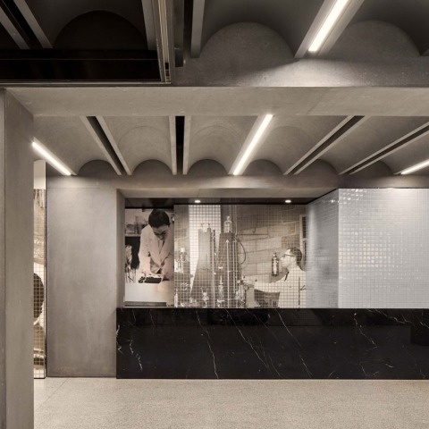 The original SEIU building contains the Anton Refreigier mural which is replicated in the entry-level lobby and is the inspiration for the continuous ceramic tiled walls that unites all of the member-facing spaces extending all four floors. The mural acts as an inspiring archive through a depiction of key moments that highlight milestones in the SEIU’s fight for labor rights since its founding. Additionally, another unifying feature is the continuous barrel ceiling vaults made from glass fiber reinforced gypsum (GFRG) cement which allows for ceiling heights that celebrate the resilience of the union. This coalescing element functions as an exhibition space to display the history, strength, and mission of the 1199SEIU.