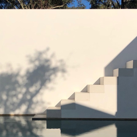In this house, Pedro Domingos Arquitectos uses water as the main material to define its atmosphere. A water tank rises in the central courtyard. The house consists of two levels, the entrance and the upper. The house is built with the system of popular architecture in the area.