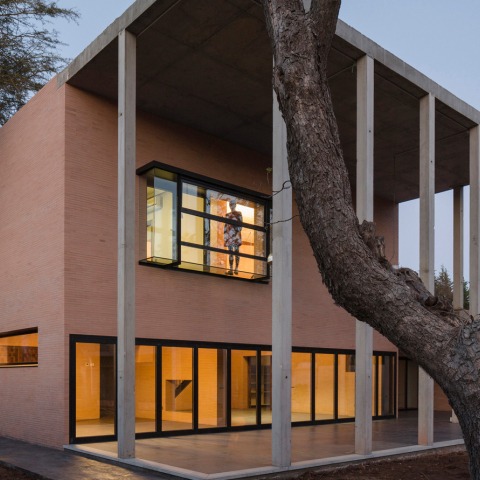 In particular, the design deploys a system of brick cavity walls that articulates all domestic spatial relations, whilst the fluid and dynamic inhabitation unfolds in-between them. The walls are made of two interconnected layers of solid firebrick – leftovers from local construction. The house is designed as a passive-structure with the help of experts in sustainability from the Architectural Association in London. The energy strategy for the design is based on the thermal inertia of the thick walls. For this reason, the brick walls and concrete slabs are left unclad to better absorb energy flows within them.