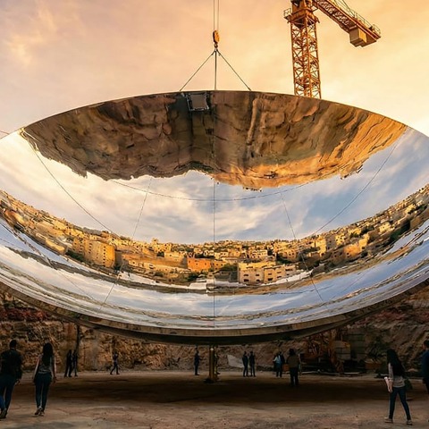 Even the abandoned construction crane is rewritten within the project's narrative. Rather than remaining a symbol of halted projects and urban failure, it becomes an arm of art—an apparatus that ceases to build walls and begins to construct meaning. It carries the mirror, reconnects what was severed, and stands as a witness to the possibility that negative space can become a lung for the city.