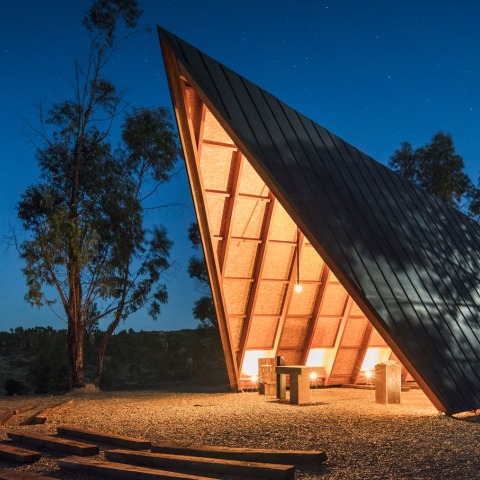 The chapel was thought out as a large tent, with open doors to everyone, at all times: a constant welcoming point for shelter, contemplation and introspection. It´s very simple form, as a classical tent, is formed by a gable roof, adapted to receive all visitors. The structure approaches people in the entrance area, where the volume is lower and narrower, closer to the human scale, and stretches forward and upward, elevating the user to something higher, facing a dazzling landscape in background, that amplifies these sensations. This intimate setting is allied to the scout and Christian spirit of communion with nature.