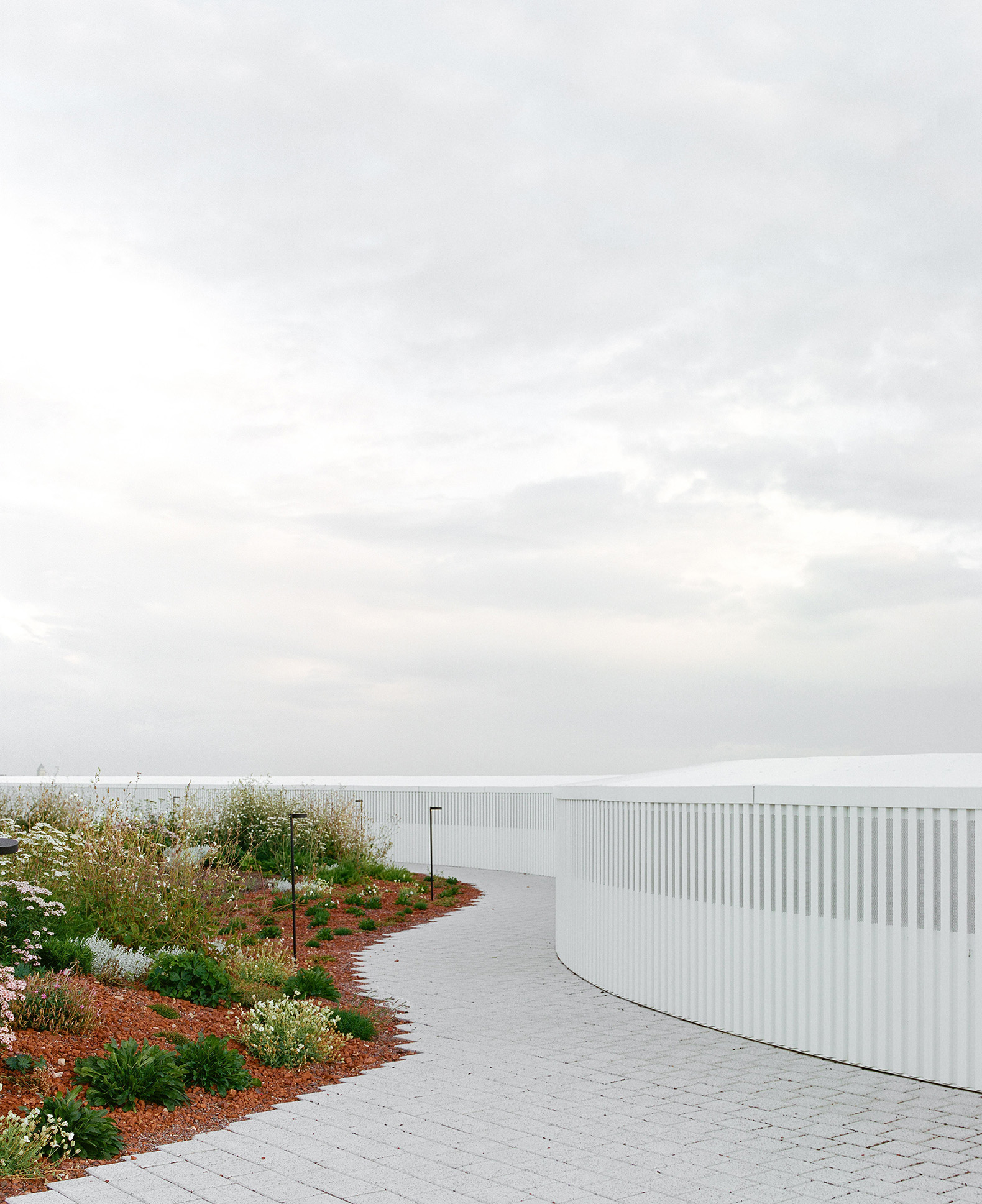 The exposed spruce structures together with careful spruce and ash detailing exhibit the natural diversity of wood as a building material. The design of the interior has been guided by a preference for materials that are natural, sustainable, and will age beautifully. Besides wood, the Viitasaari gray granite used on the facades and on the pavement outside as well as inside connects the building to its urban environment. The outdoor spaces of the building are inspired by northern nature and feature a birch grove in the courtyard and archipelago meadows on the rooftop.
